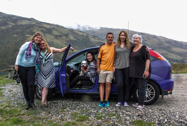 Wonderful scenery… I love that photo of you all outside the little purple car; my first thought was “how did they all fit into that?” Have a wonderful time, all of you. Koa ki to haerenga ki Aotearoa.