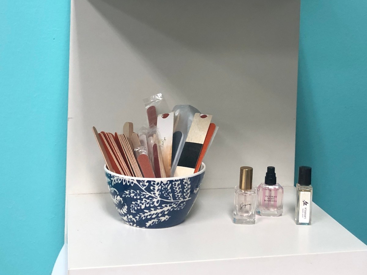 Lifted Spirits nail files and perfume samples Published May 5, 2019 at 1894 × 1421 in Lifted Spirits: Remodeling the Boutique ← Previous Next → A few available extras Share this: Click to share on Facebook (Opens in new window) Facebook Click to share on X (Opens in new window) X Click to share on Pinterest (Opens in new window) Pinterest Click to print (Opens in new window) Print Click to email a link to a friend (Opens in new window) Email More Click to share on LinkedIn (Opens in new window) LinkedIn Click to share on Tumblr (Opens in new window) Tumblr Like Loading...