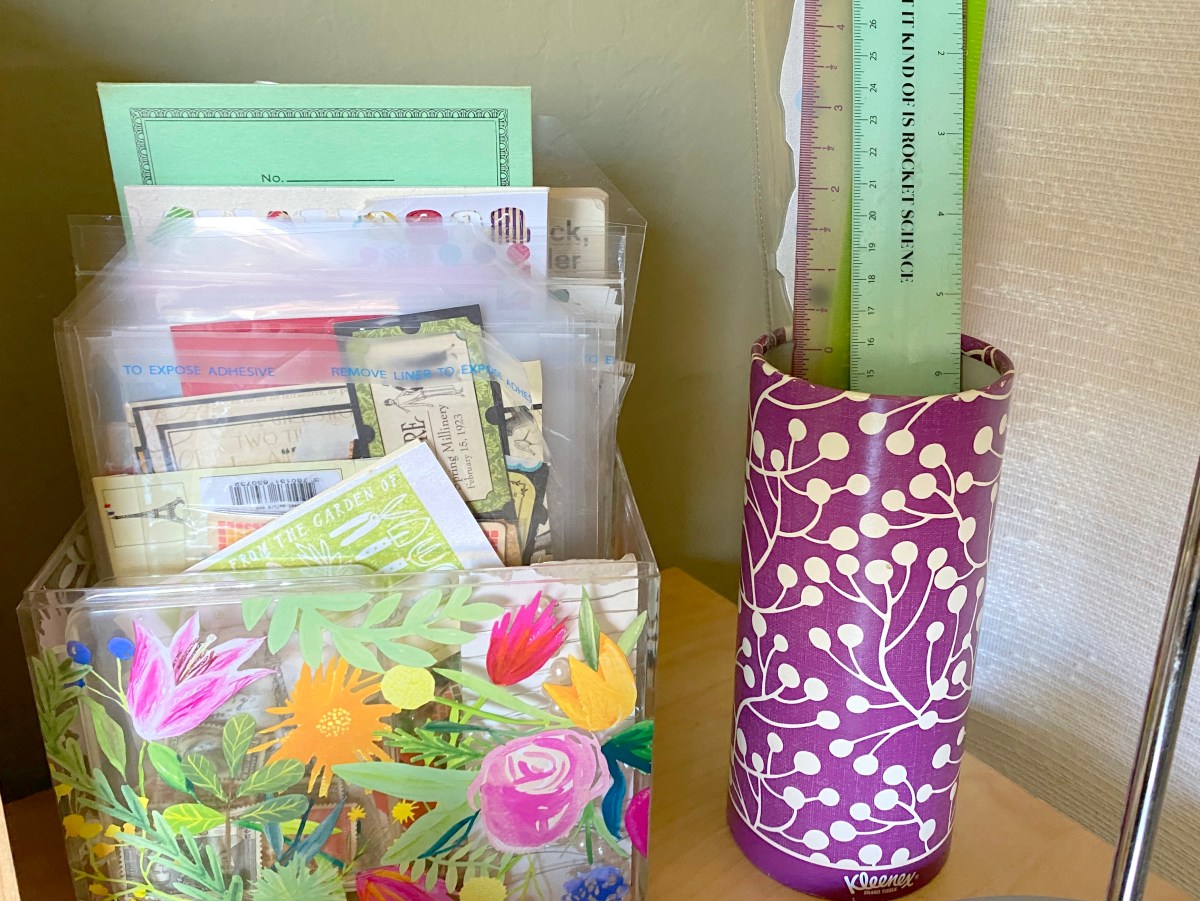 recipe box for ephemera, Kleenex tube for rulers Published May 4, 2020 at 3474 × 2610 in A Craft Space of My Own ← Previous Next → Recipe box for ephemera and a tall Kleenex box, weighted with marbles, for my rulers Share this: Click to share on Facebook (Opens in new window) Facebook Click to share on X (Opens in new window) X Click to share on Pinterest (Opens in new window) Pinterest Click to print (Opens in new window) Print Click to email a link to a friend (Opens in new window) Email More Click to share on LinkedIn (Opens in new window) LinkedIn Click to share on Tumblr (Opens in new window) Tumblr Like Loading...