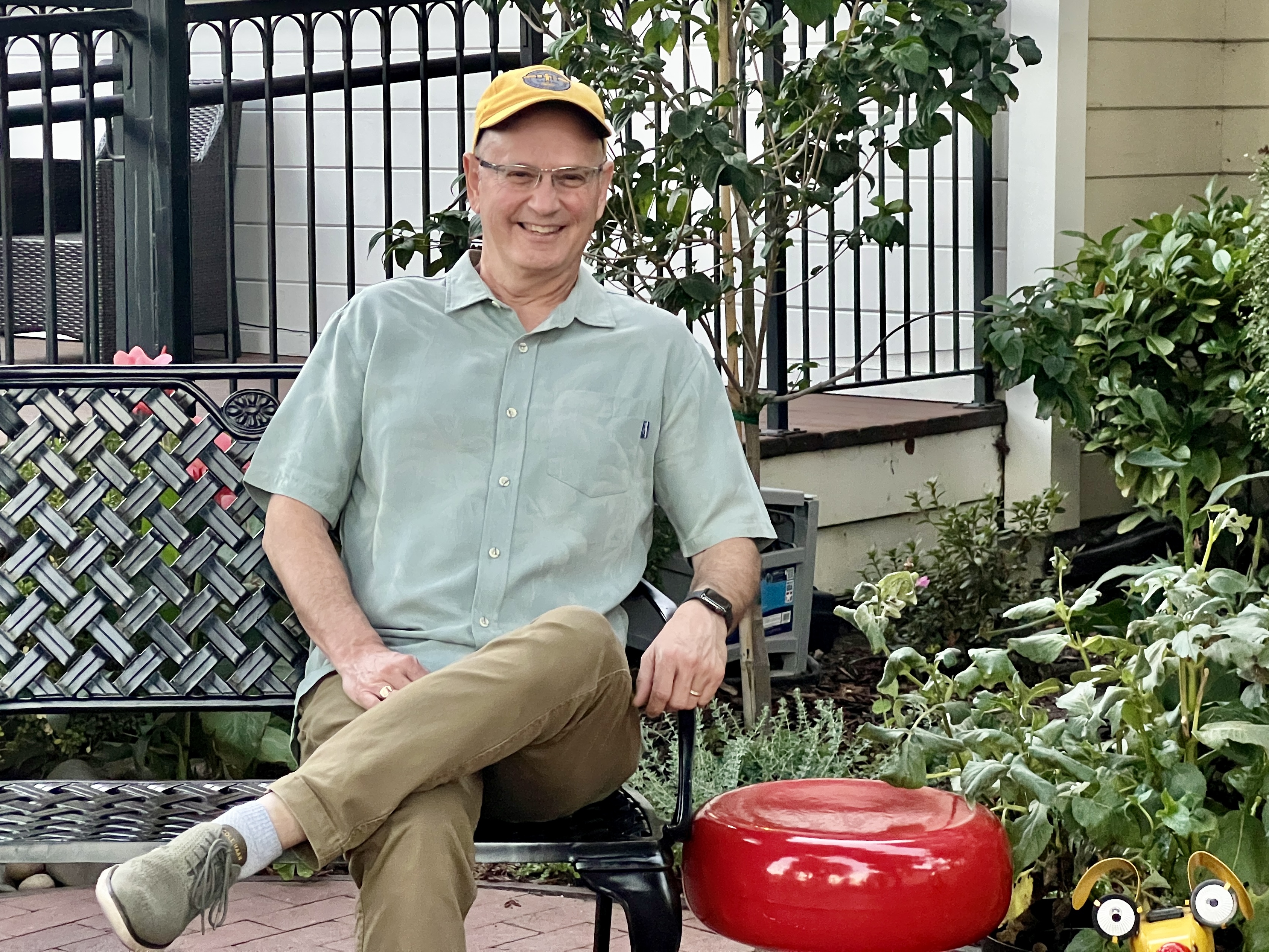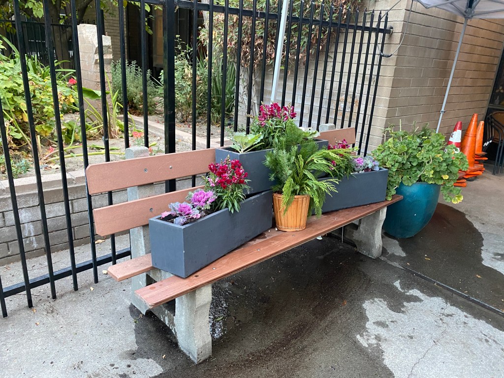 I planted a potted garden on the bench