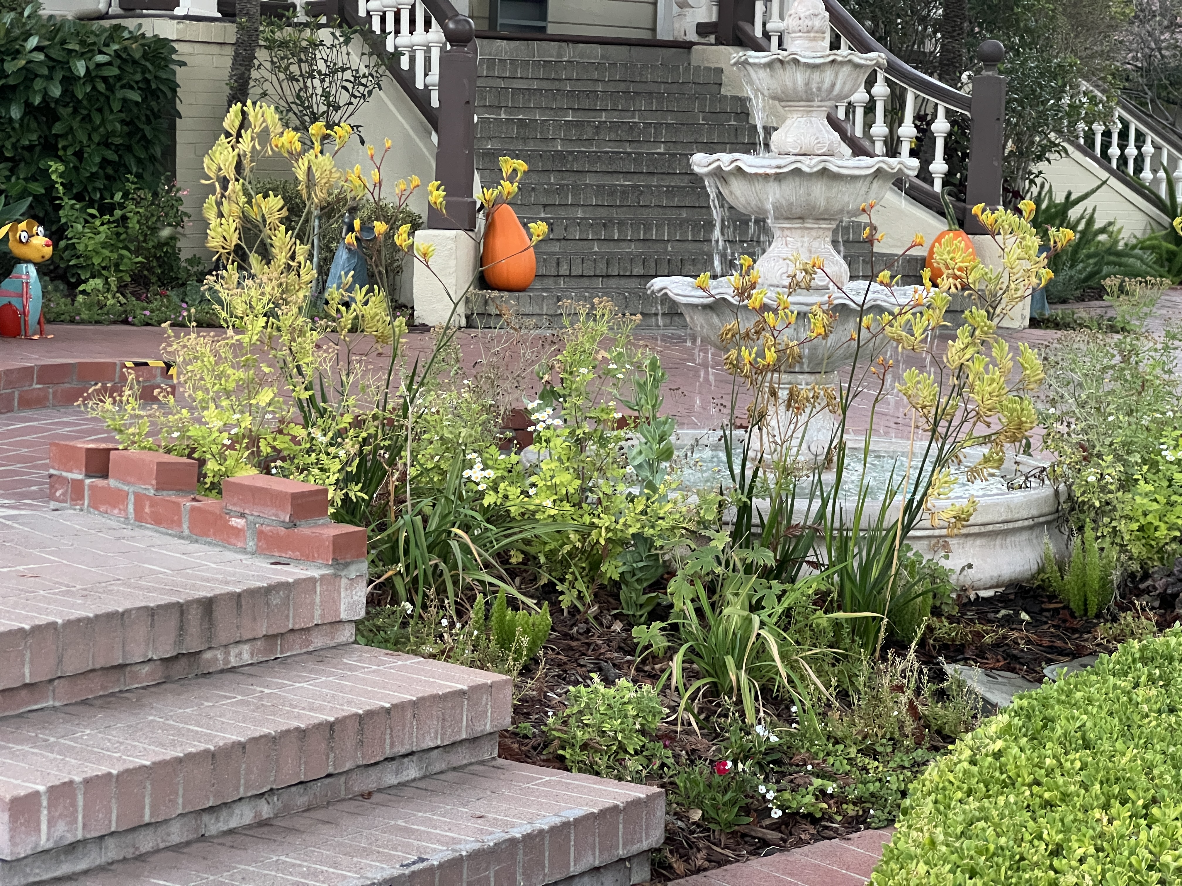 There you have it. The importance of a tiny vase on Monday to celebrate the opening of the fairy garden. The fairy garden sits beside the fountain’s right, surrounded by Campanula, commonly known as bellflowers. It’s a welcome respite for fairies and garden visitors alike.