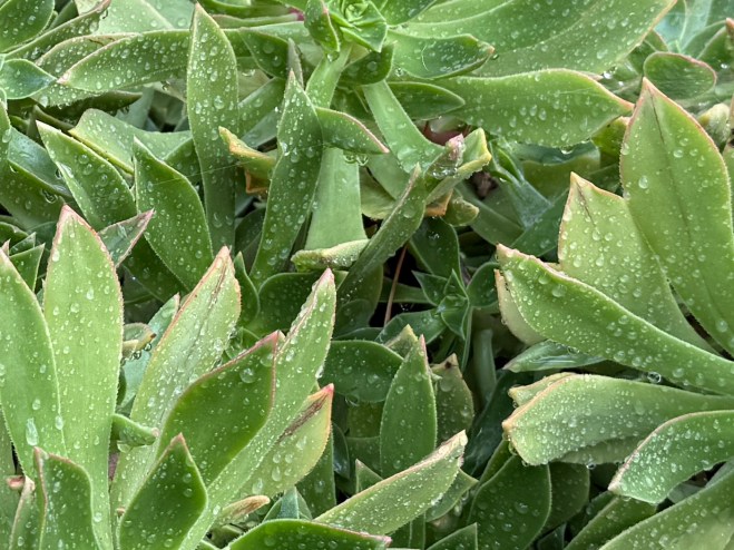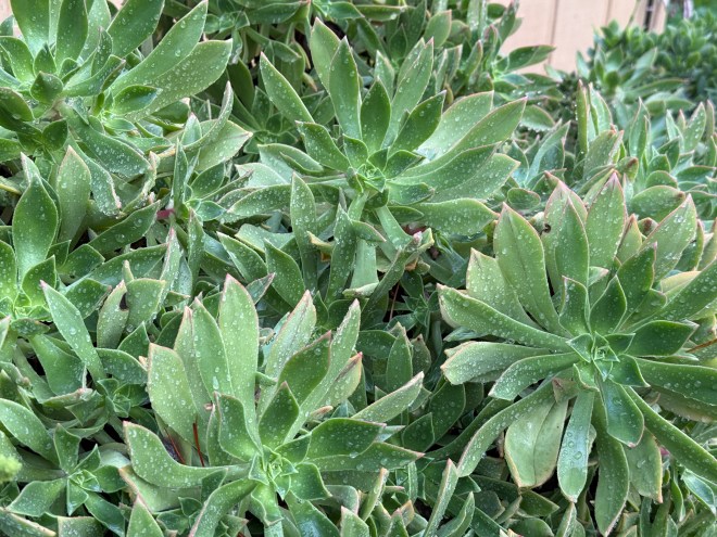 The space looked empty for a time, but I’ve since planted several succulents that had outgrown their pots. They took to the spot immediately, and by next Spring, they will be well established. They’re also water-wise plants that don’t require much fuss. The freesias came up quickly around the stone walkway, but it will be several months before they flower.