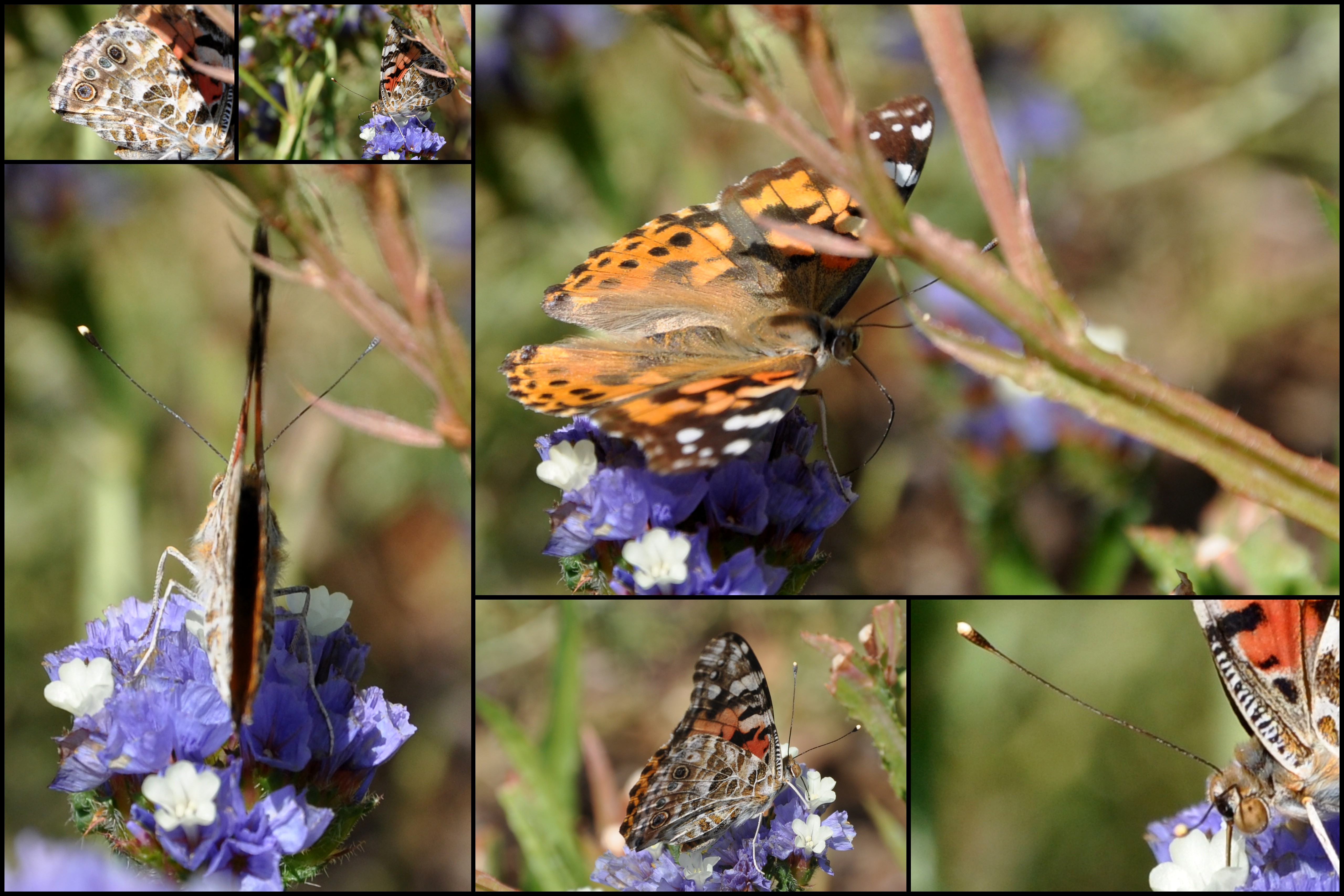 Rounding out the collection is a pollinator formerly known by yours truly as “A bee”, a nondescript, generic term I use for any sort of flying, pollinating “bee” in my garden. Now I’ve been forced to reconsider this description as well, allowing for the possibility that this is a wasp or a hover-fly. Any guesses?