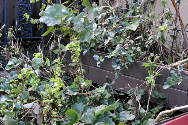 I tamped the dirt into place and stepped back realizing we’d created a micro fruit orchard. I’m using the word “orchard” liberally; with our tiny suburban lot, it all needed to fit into about 6 x 8 feet (1.8 x 2.4 meters) of space. Our micro-orchard has blueberries, raspberries, plums, nectarines, peaches and apricots. When you garden in a tiny plot, every bit of dirt counts.