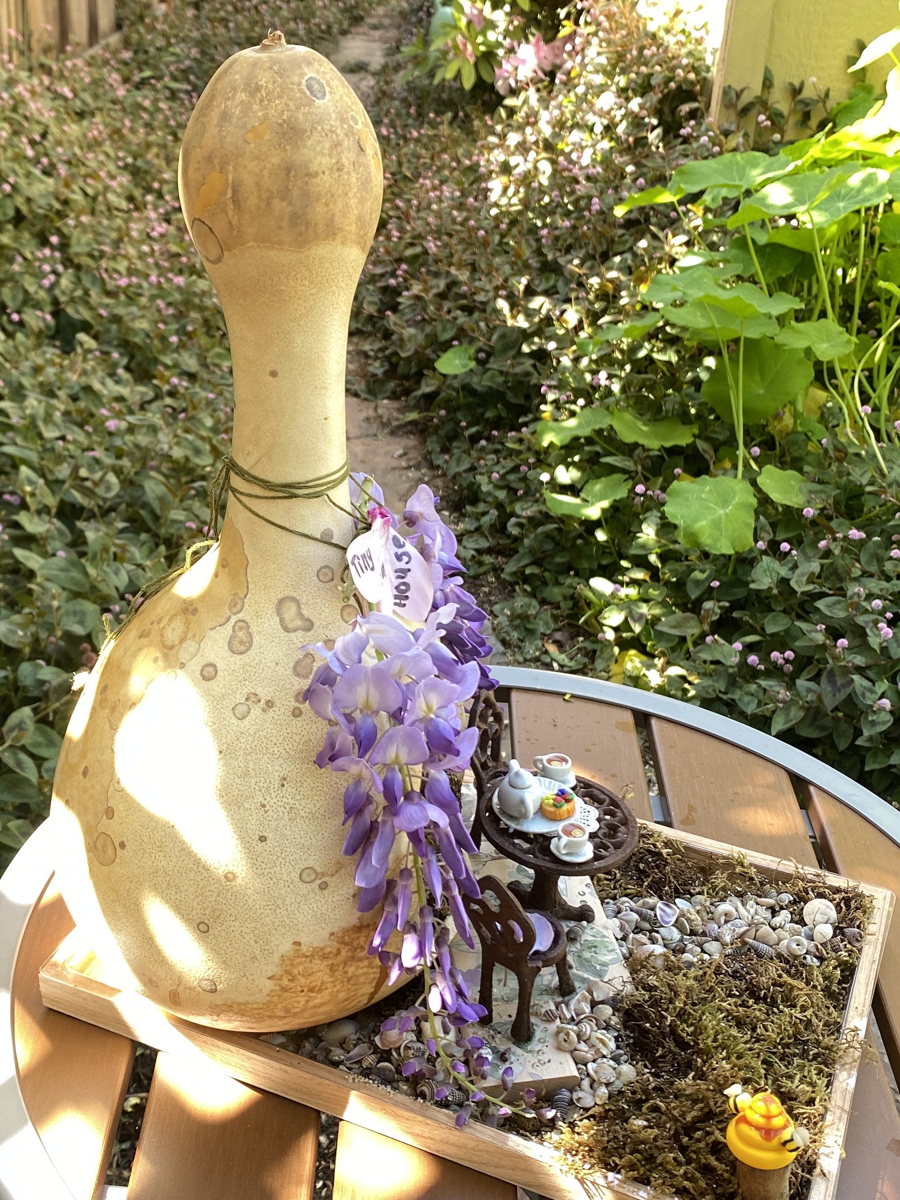 I once told a friend that the best time to pull weeds is after the last rain of the season. The wet soil is happy to relinquish the weeds, roots, and all. I didn’t wait this year, and it’s just as well. Things are still looking fresh. I’ll continue to enjoy it while it lasts.