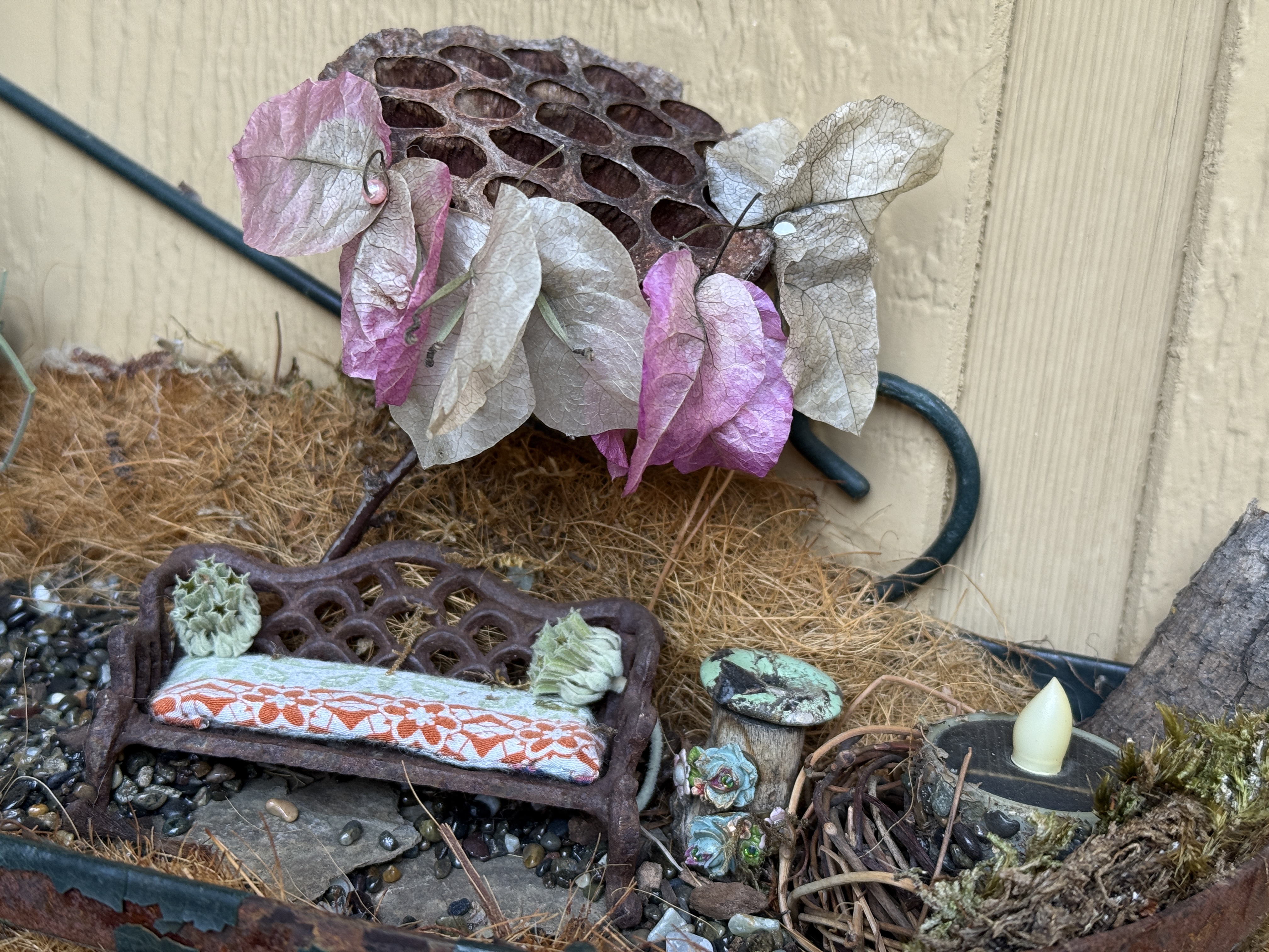 I bring out my collection of hand-crafted pumpkins each year. They have an international flavor, one sent as a gift from Cathy in Germany, another made by Randi, who hails from Norway, and the third, a gift from my friend Stephanie. I bought the velvet ones at a craft fair many years ago.