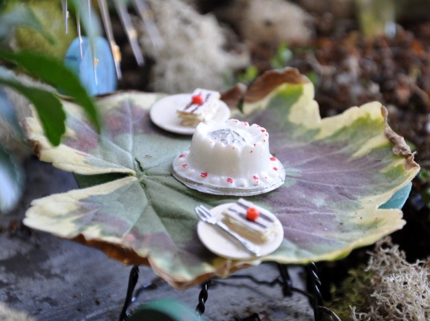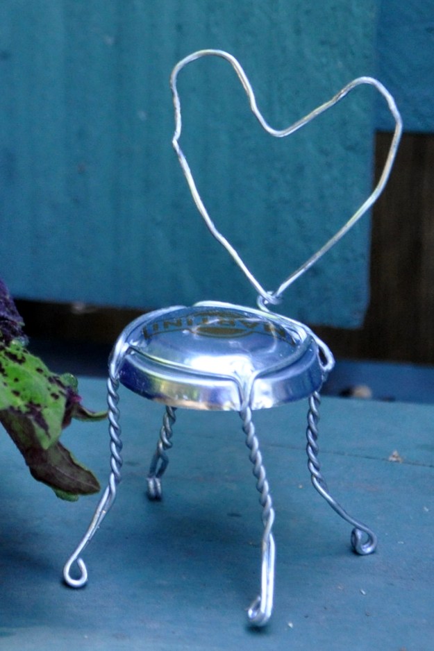 Fairy gardens are a fun way to up-cycle household items. I’ve used wine corks, empty tea light holders, scraps of ribbon and the cap from a bottle of champagne, pictured above. You can use up old paint, or give a second life to a discarded toy. I love the challenge of using things I have on hand.