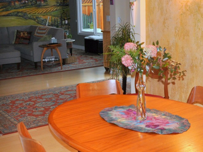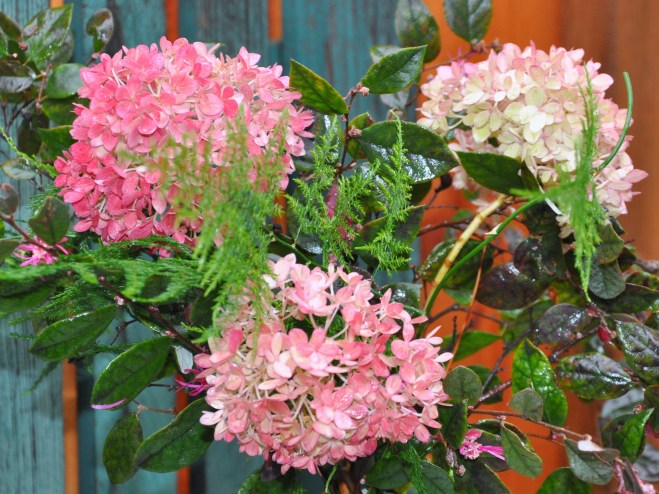 It’s a nice complement to last year’s hydrangea blooms, currently faded to shades of cranberry and pink.