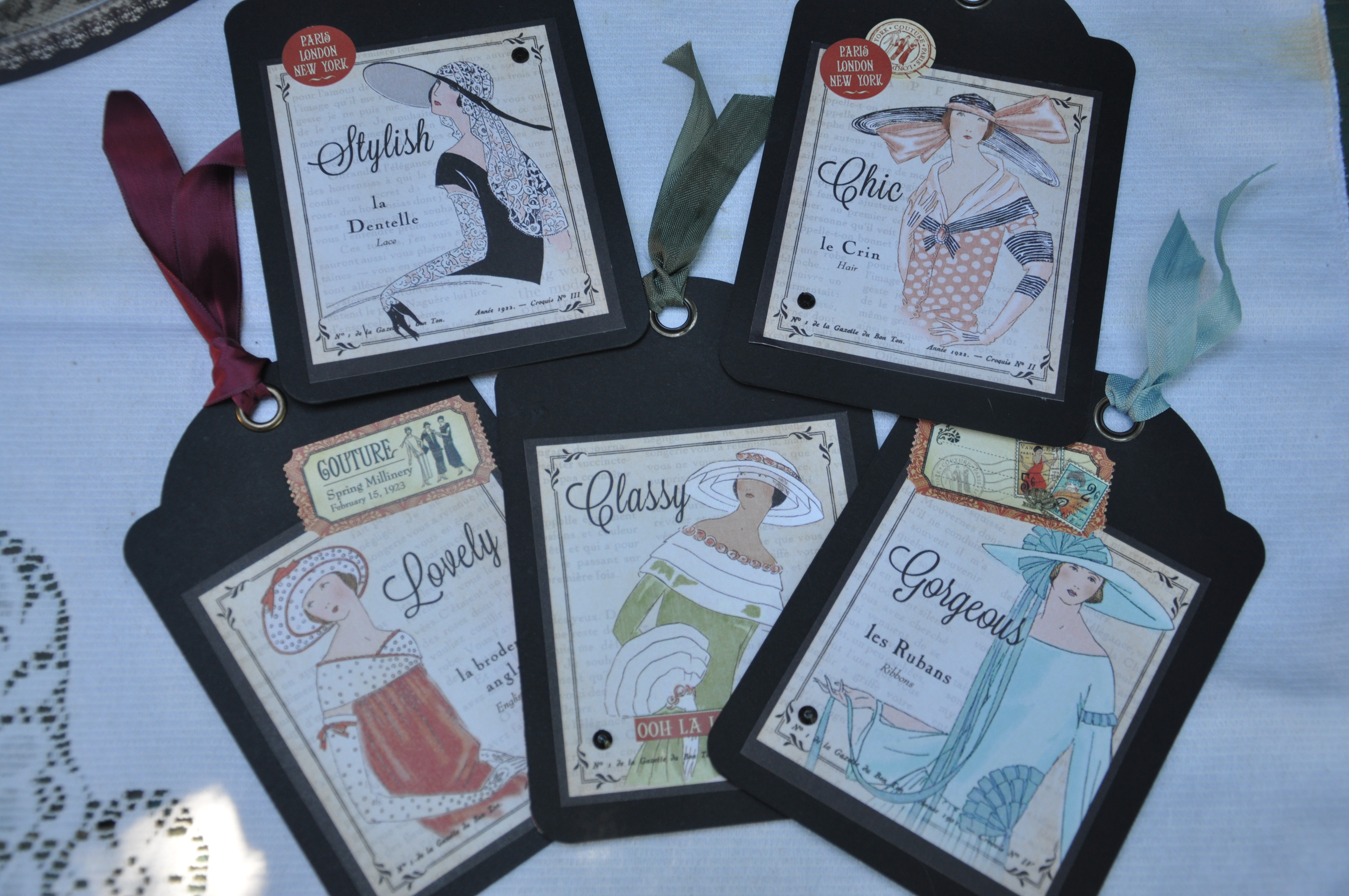 Yesterday I put the finishing touches on Laura’s birthday gift, a set of greeting cards and gift tags made using the Couture line of paper by Graphic 45.