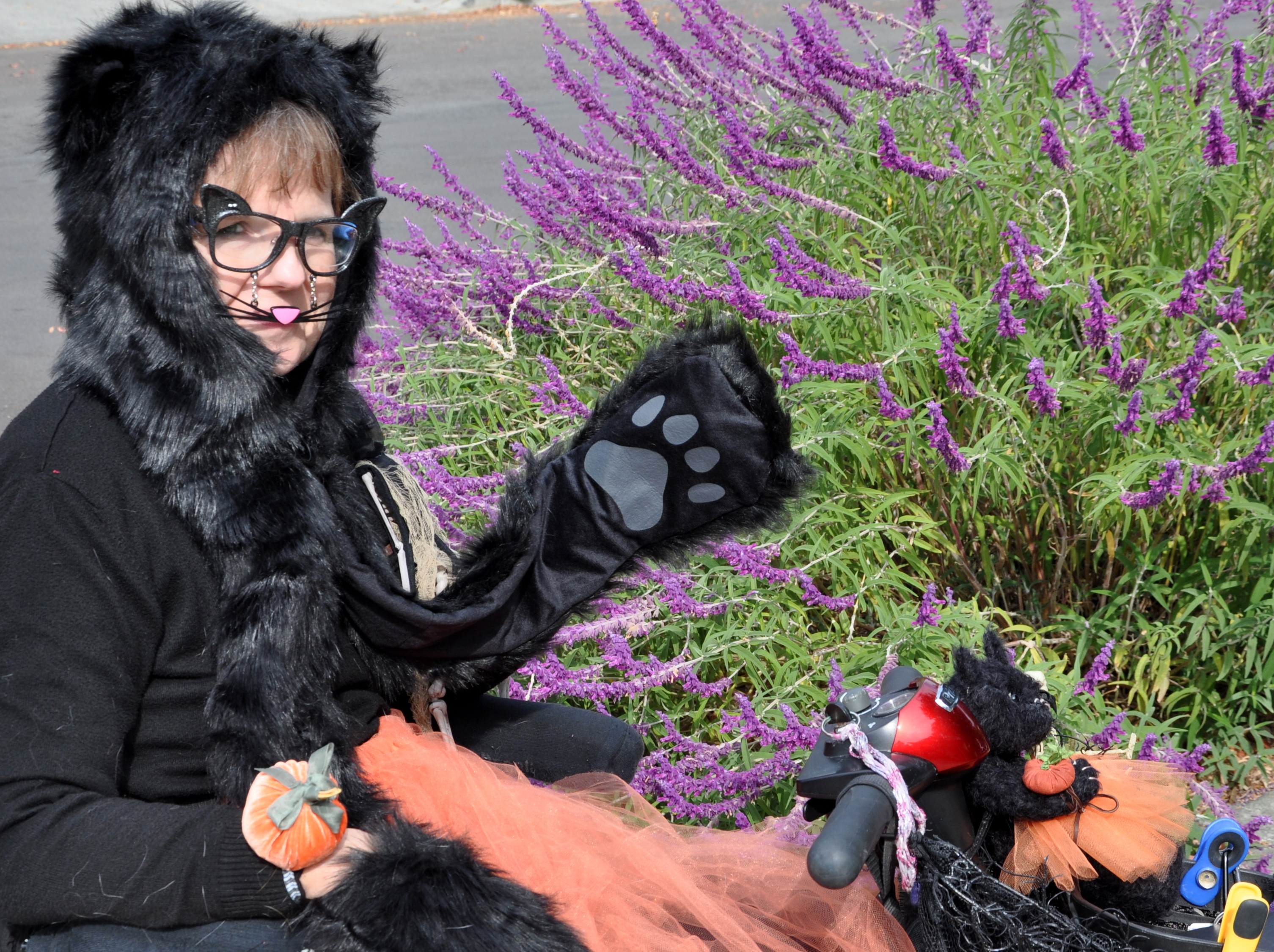 Sharon dressed as a witch. I made a costume this year called my year in trash