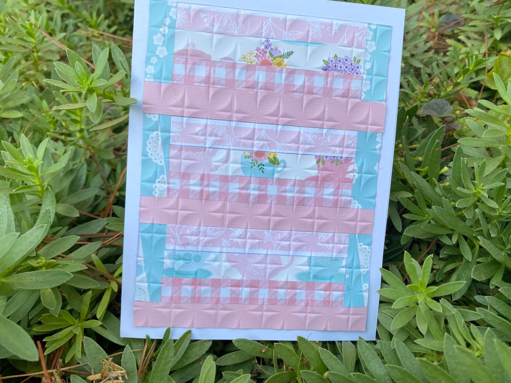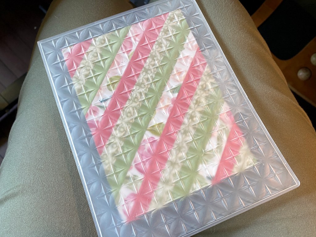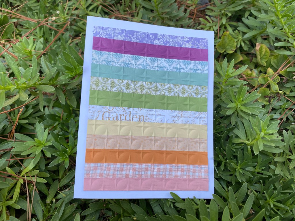 At the suggestion of my friend Dawn, I bought an embossing folder that imprints a quilt-like texture on paper. A little retail therapy for the win.