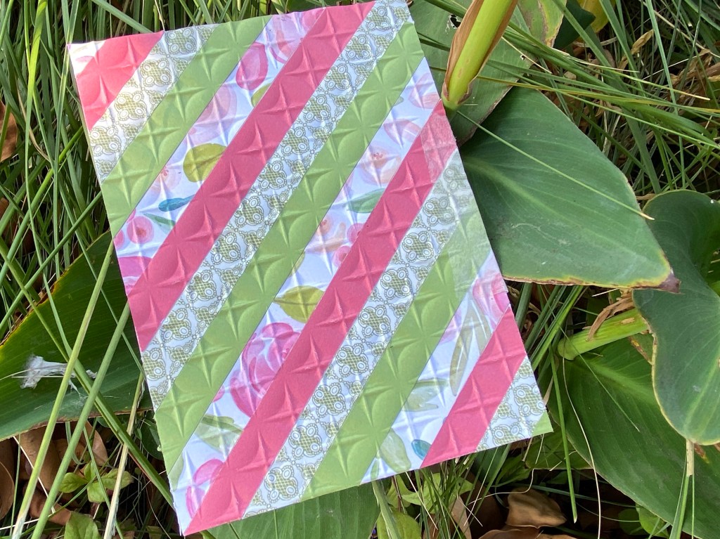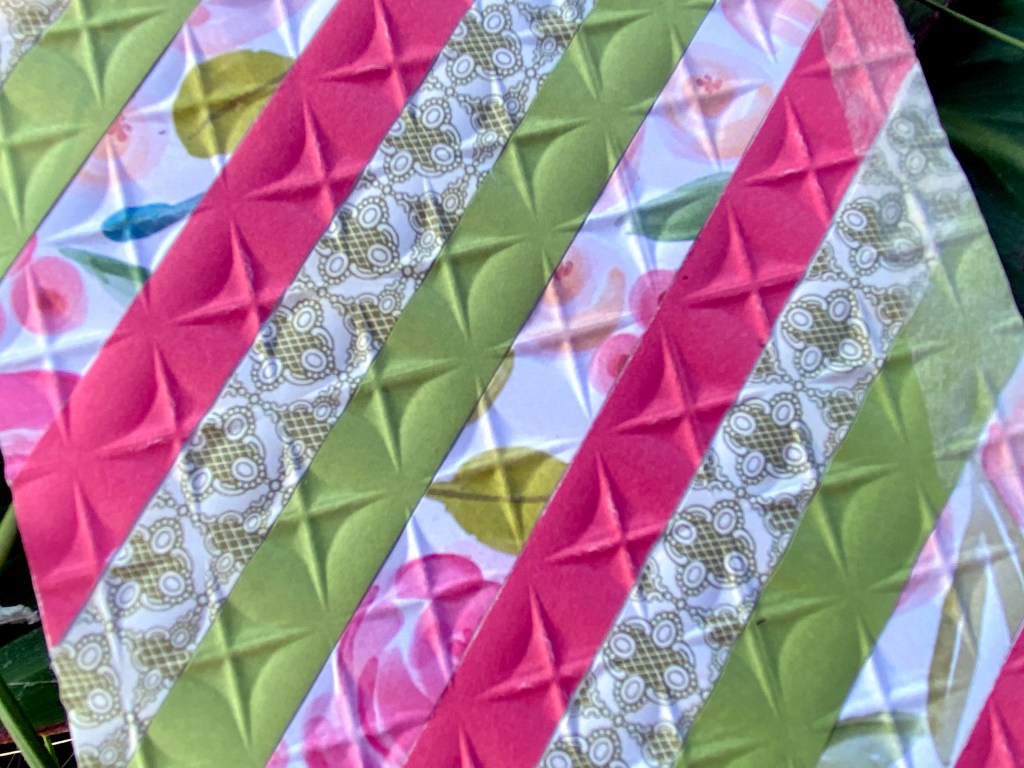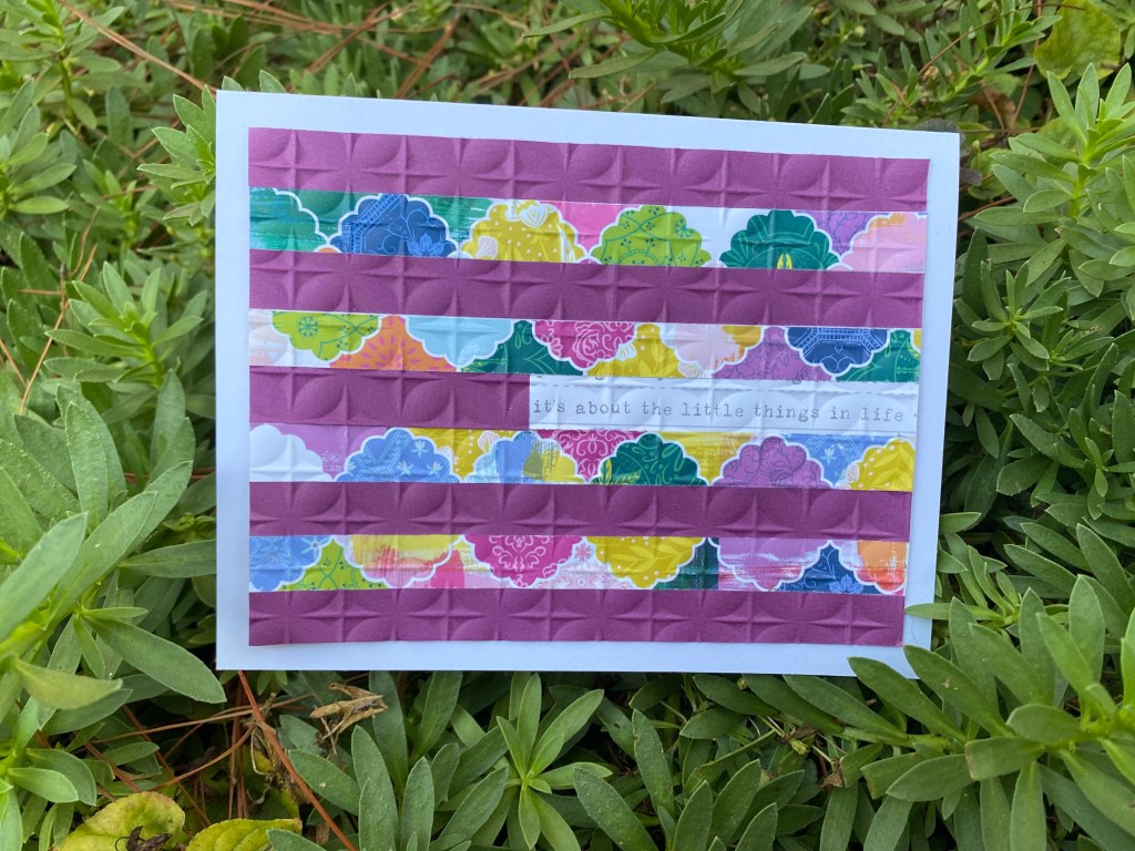 I’ve made cards using this simple pattern before. I enjoy the blending of color, pattern, and texture.