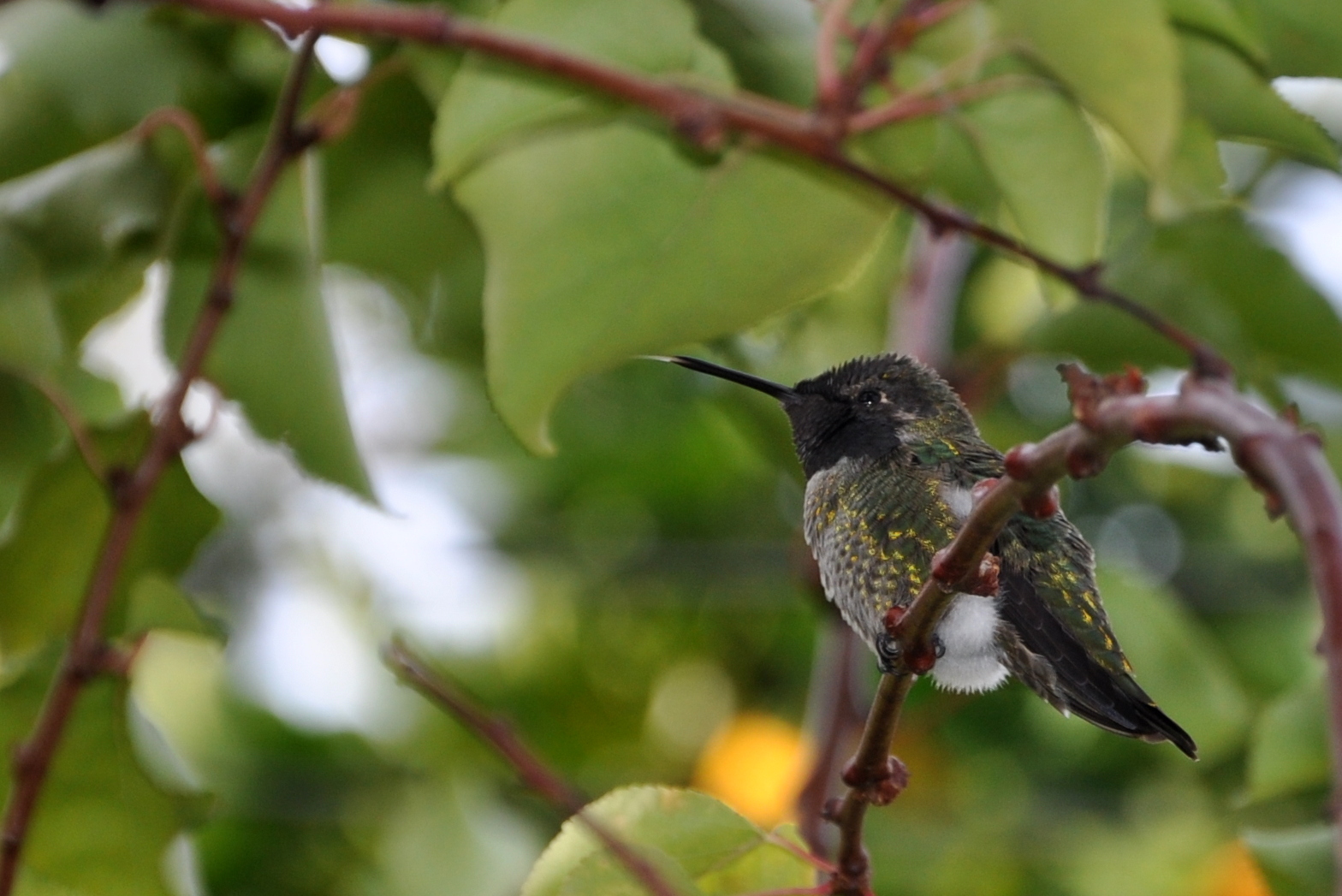 This Anna’s hummingbird took a shower from the branches of the Chinese Pistache. Apparently he’s a pluviophile too.