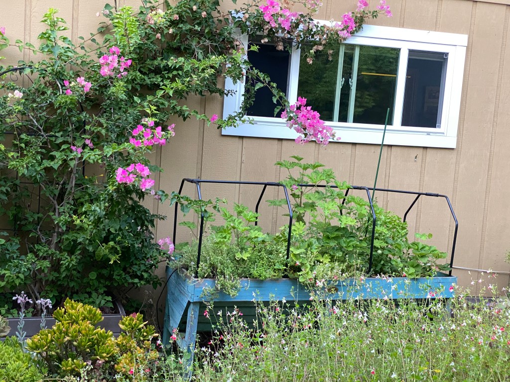 Fresh strawberries are another summer hallmark. The VegTrug is more densely planted this summer making it harder for critters to spot the red berries. I wouldn’t swear to that but it’s my working theory every time I harvest a delicious berry, unmolested by a rat, snail, or squirrel. These plants are six years old, so it’s the end of their run. Next summer I’ll plant even more.