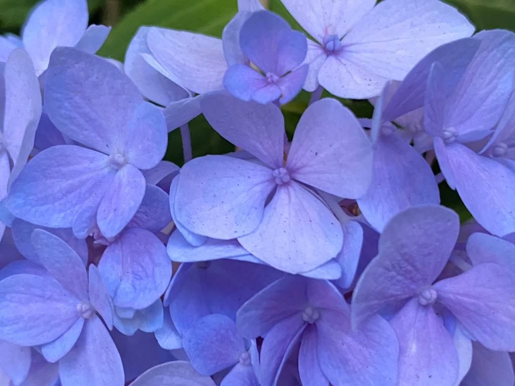 Mike added acid-rich plant food to the hydrangea last year, hoping to bring back the shades of blue. Interestingly, the above two photos are from the same plant. I’m enjoying the variety.
