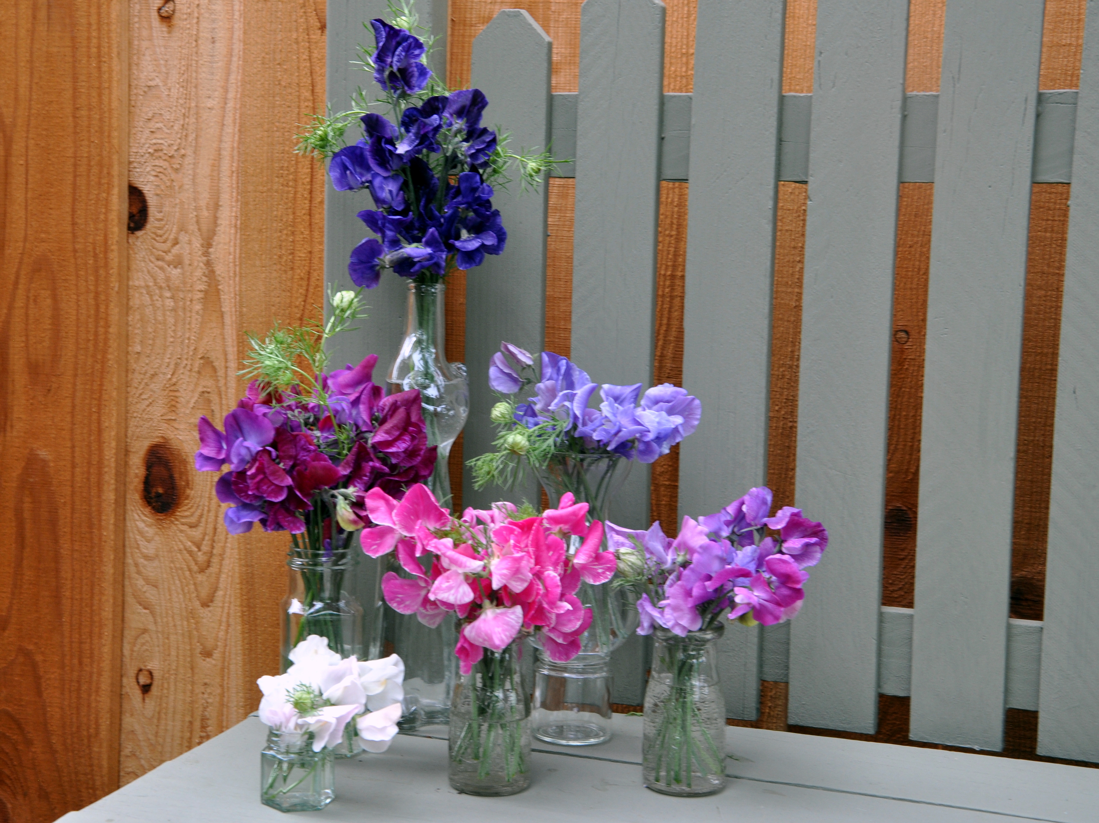 Sweet peas are slowly emerging in several shades of purple. Conversely, the freesias are winding down, but several white varieties remain in bloom. I added freesias to my vase with cuttings from our Pittosporum tree. The greens are shiny this time of year, with subtle, waxy citrus-scented flowers which generate an intoxicating scent. I hope the arrangement holds up for Easter, but if not, I’ll find more for the table’s centerpiece.