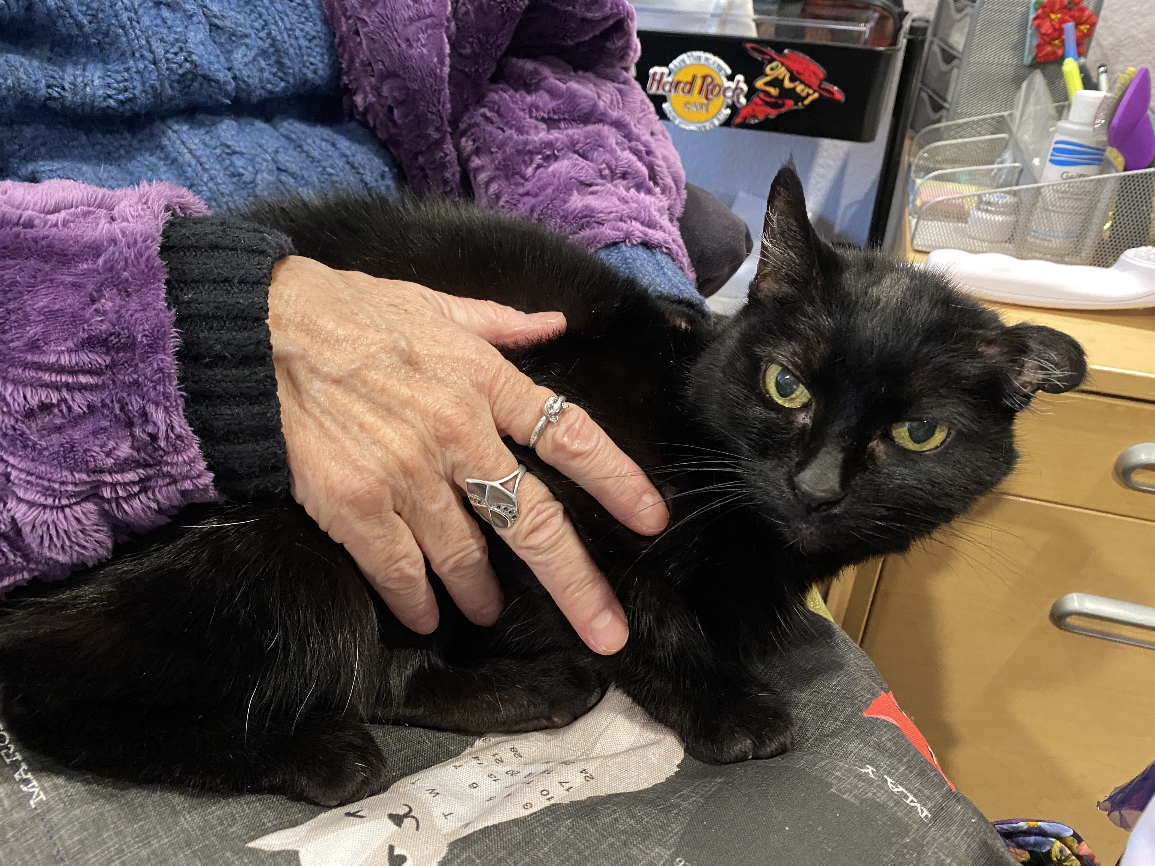 My sister had her final visit with Queen B on Sunday. Her sweet kitty had been declining for some time, with last week’s visit to our vet confirming mild anemia, dilute urine, and cancer. Letting the kitty suffer was never an option, but facing those final decisions isn’t easy.