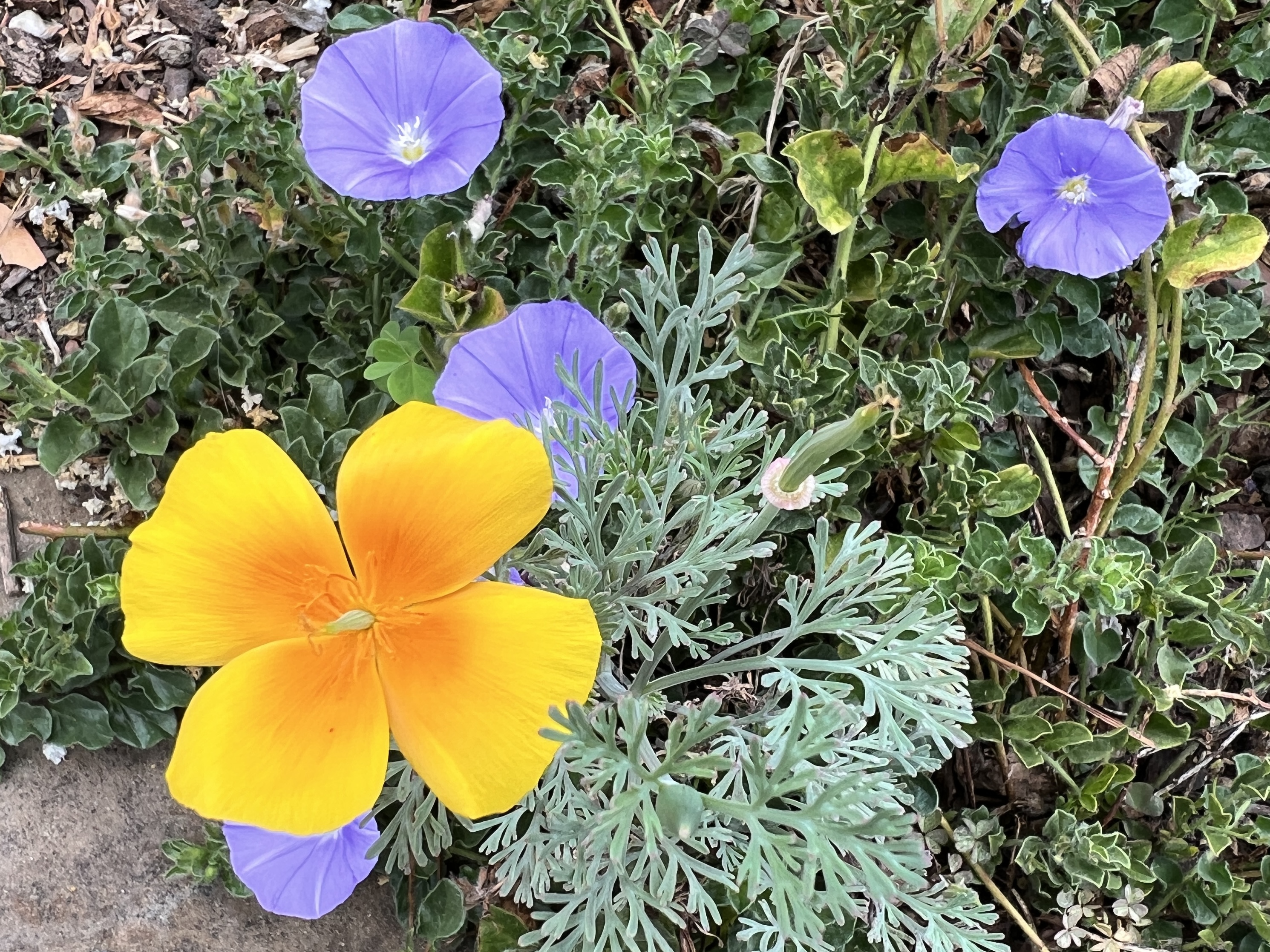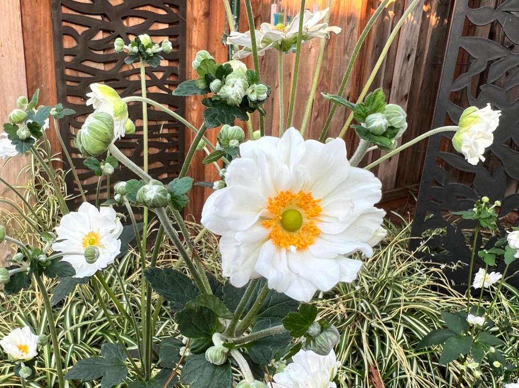 The rock wall is awash with white anemones that have grown quite tall this year, thanks to a good soaking rain this past winter.
