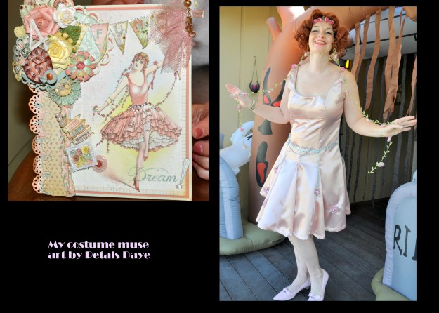 My headdress stayed in place all night and the costume itself was quite comfortable. Mike was a bit hot after dancing with his rubberized pecs, but otherwise, he was comfortable as well. Watching several women trying to maneuver in a mermaid costume helped me appreciate the beauty of a pull-on dress.