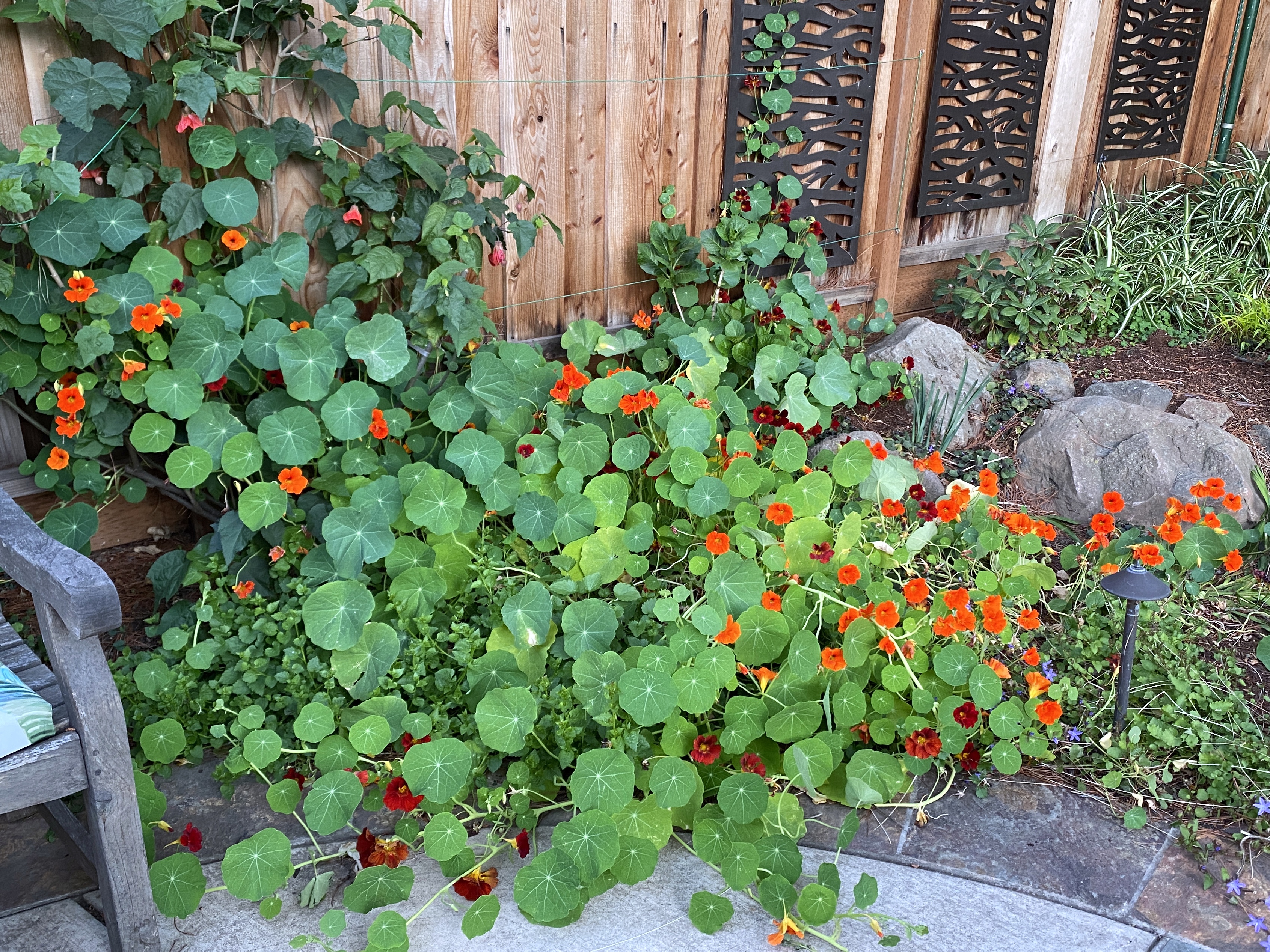 Most of my gardening time in recent weeks has been spent digging out once-charming now-invasive violets. When they initially appeared in the garden, I thought they were derivative of annual pansies. We don’t generally see wild violets here in San Jose.