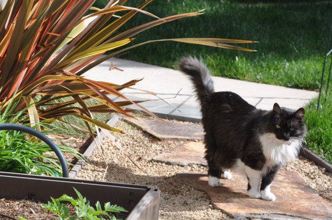 I also pulled weeds, topped of the planter boxes with rich soil, checked on the mini-greenhouse *and* remembered to do a good job with my sunscreen. Lindy kept me company, happy to be outdoors on this glorious day.